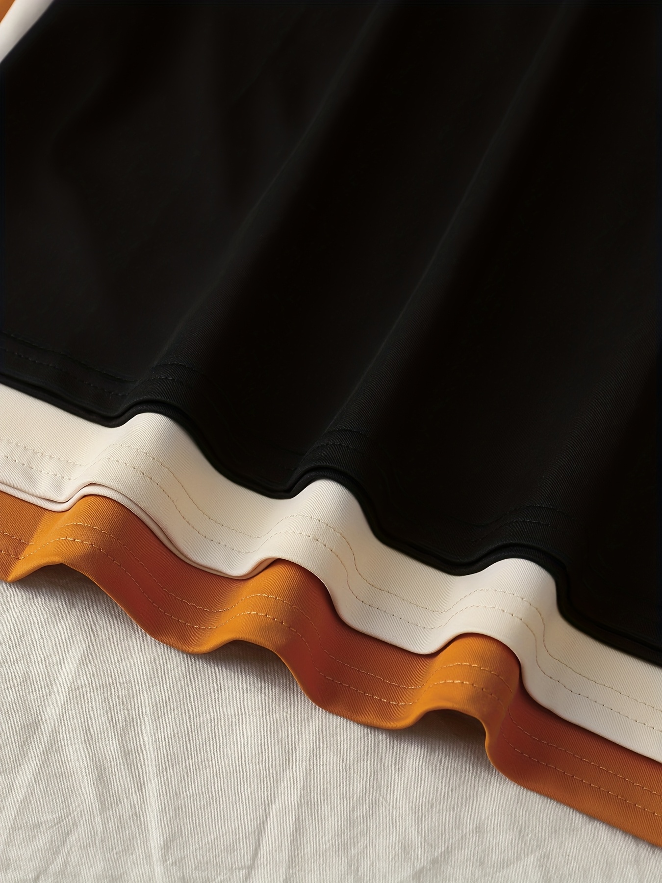 3pcs Long Dress Set with Short Sleeves, Elegant Skirt for Layering YT