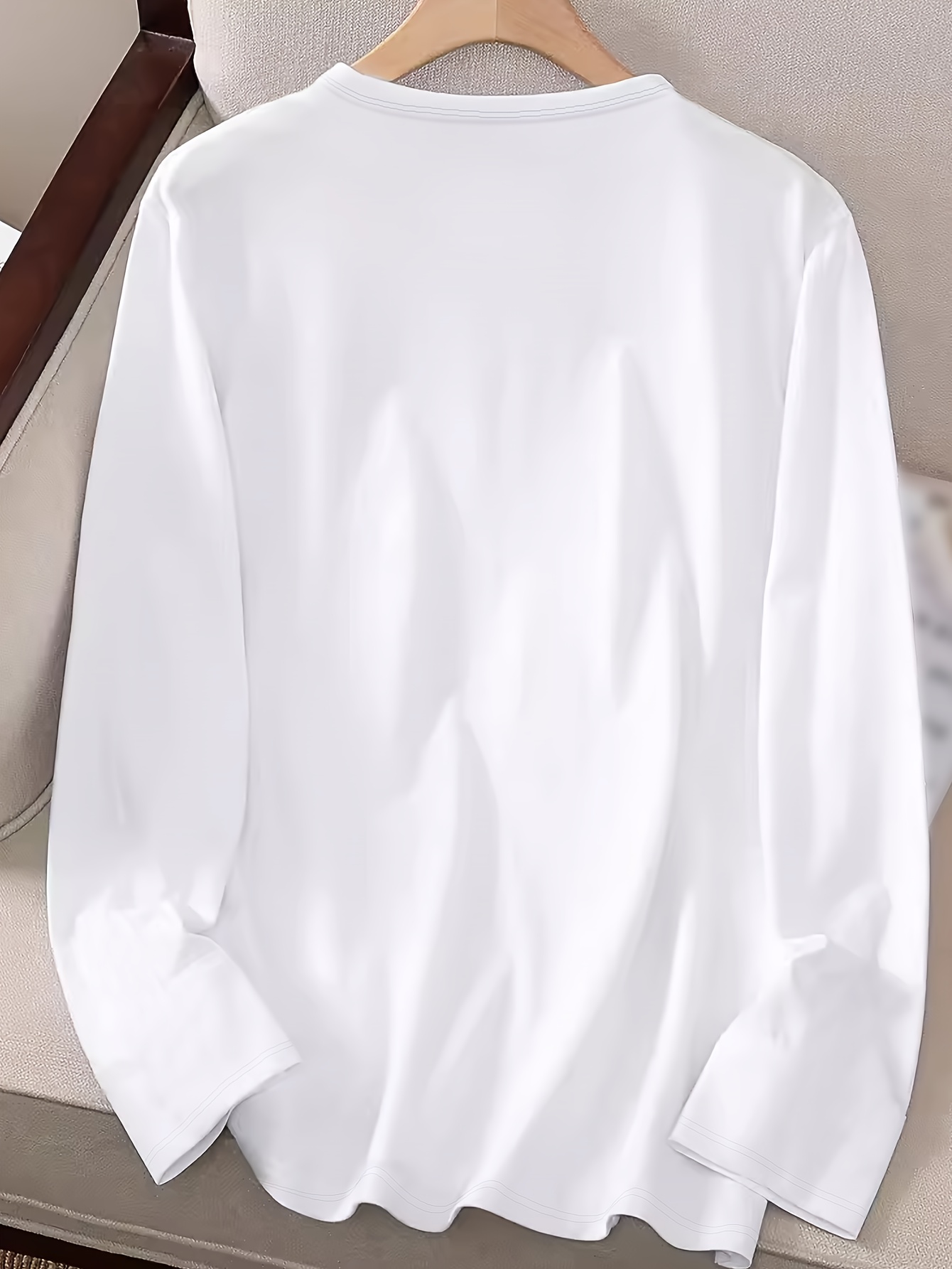 Women's Black Long Sleeve Crew Neck T-Shirt with White & Grey Titmouse Bird & Red Berry Graphic Print - Soft Casual Fall Winter Top, Machine Washable Everyday Comfortable Shirt for Nature-Inspired Outfits