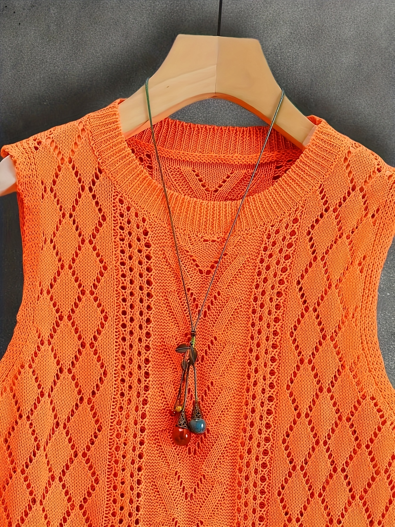 Women's Sleeveless Geometric Cut-Out Vest - Bright Orange Elegant Casual H-Line Regular Fit, All-Season Versatile Layering Piece for Casual Attire, Openwork Pattern, Lightweight Fashion, Summer Wardrobe, Delicate Detailing, Stylish Women