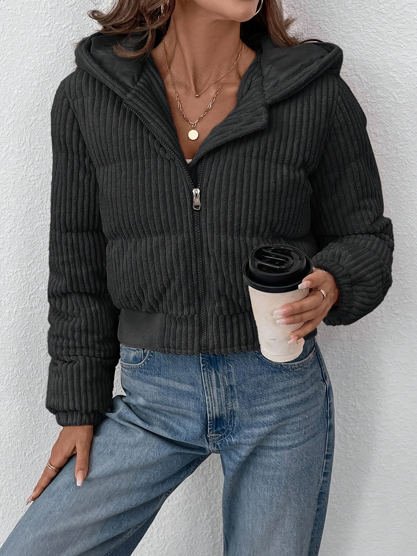 [Elegant Zip-Up Hooded Jacket] Elegant Women's Short Zip-Up Hooded Jacket | Full-Zip Closure, H-Line Silhouette, Flared Hem, Machine Washable, Versatile Casual to Semi-Formal, Solid Color (White & More)