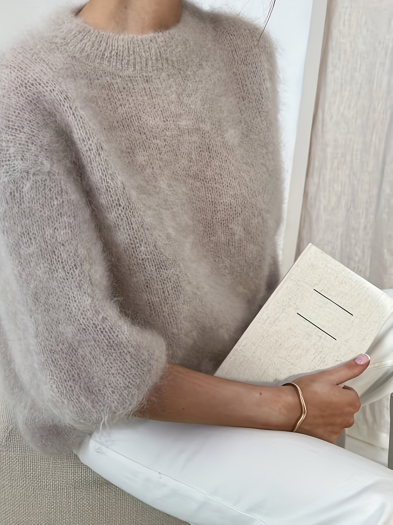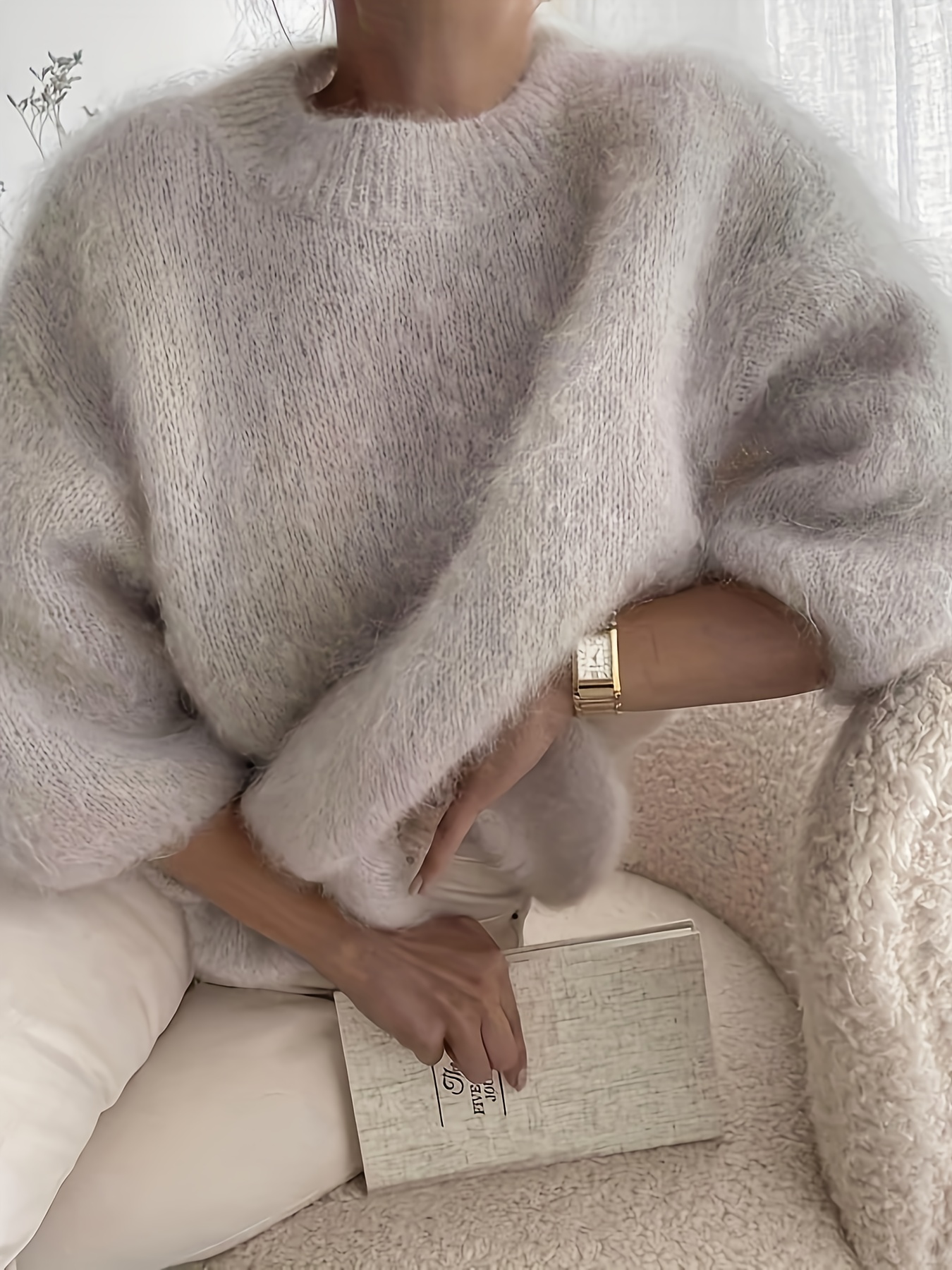 Women'S Autumn and Winter Round Neck Half-Sleeve Pullover Sweater, Soft Comfortable Fuzzy Loose Thick Top