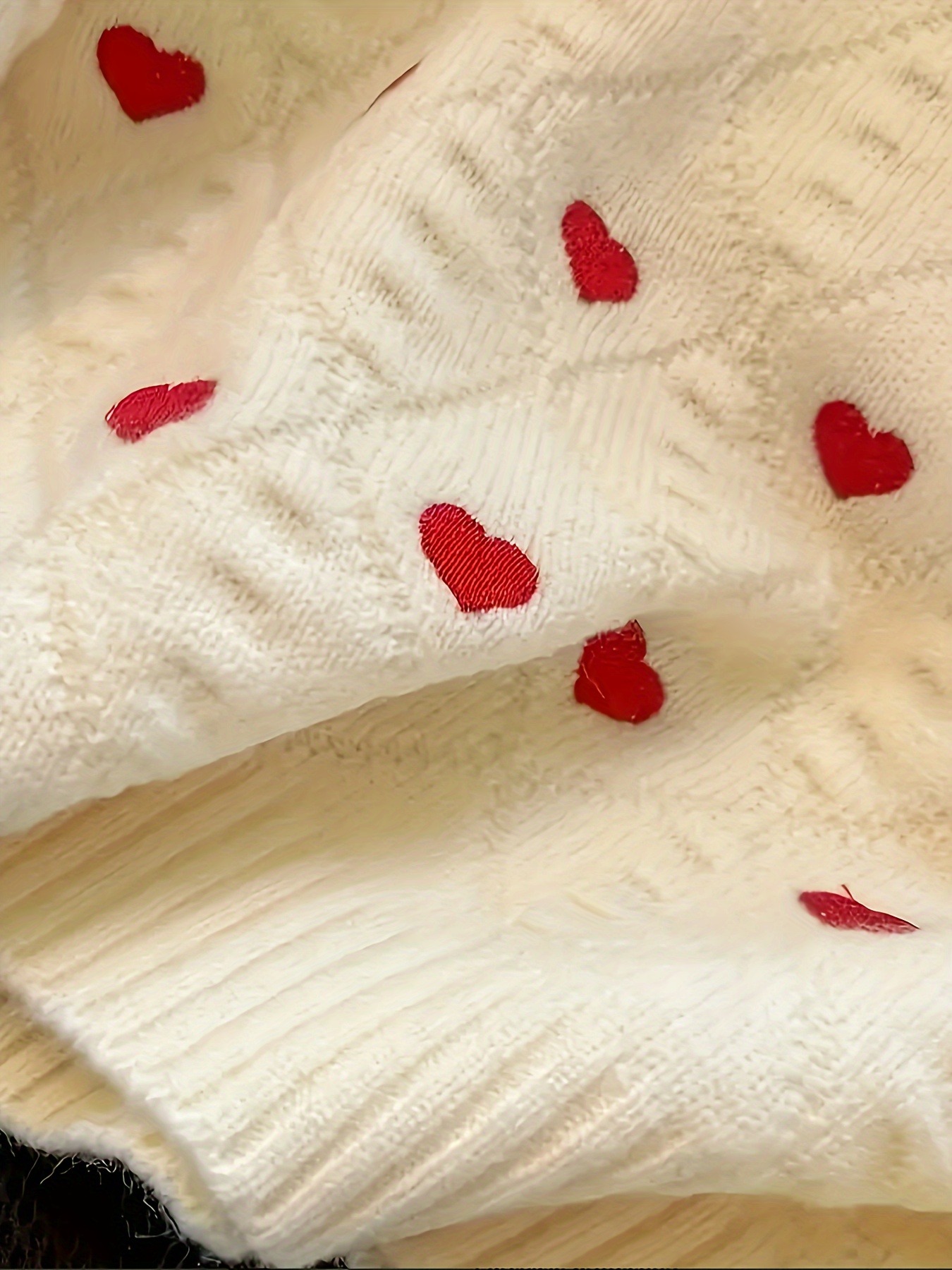 Women's Cozy Winter Sweater with Red Heart Patterns - Cute Round Neck Pullover, Soft Warm for Fall & Winter, Casual Chic Outfits, Cute Sweater, Comfortable Outfit, Details
