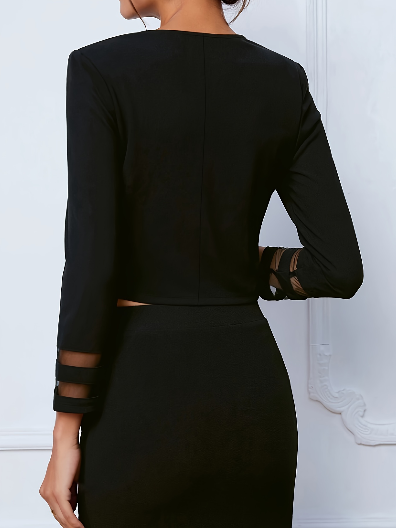 Women's Black Jacket - Elegant Lace Accent blazer, Machine Washable Office & Party Coat, Lightweight Three-Season Outerwear for Women (Spring/Fall/Summer) - Chic Women's Clothing, Versatile Fashion, Round Neckline, Sophisticated Design