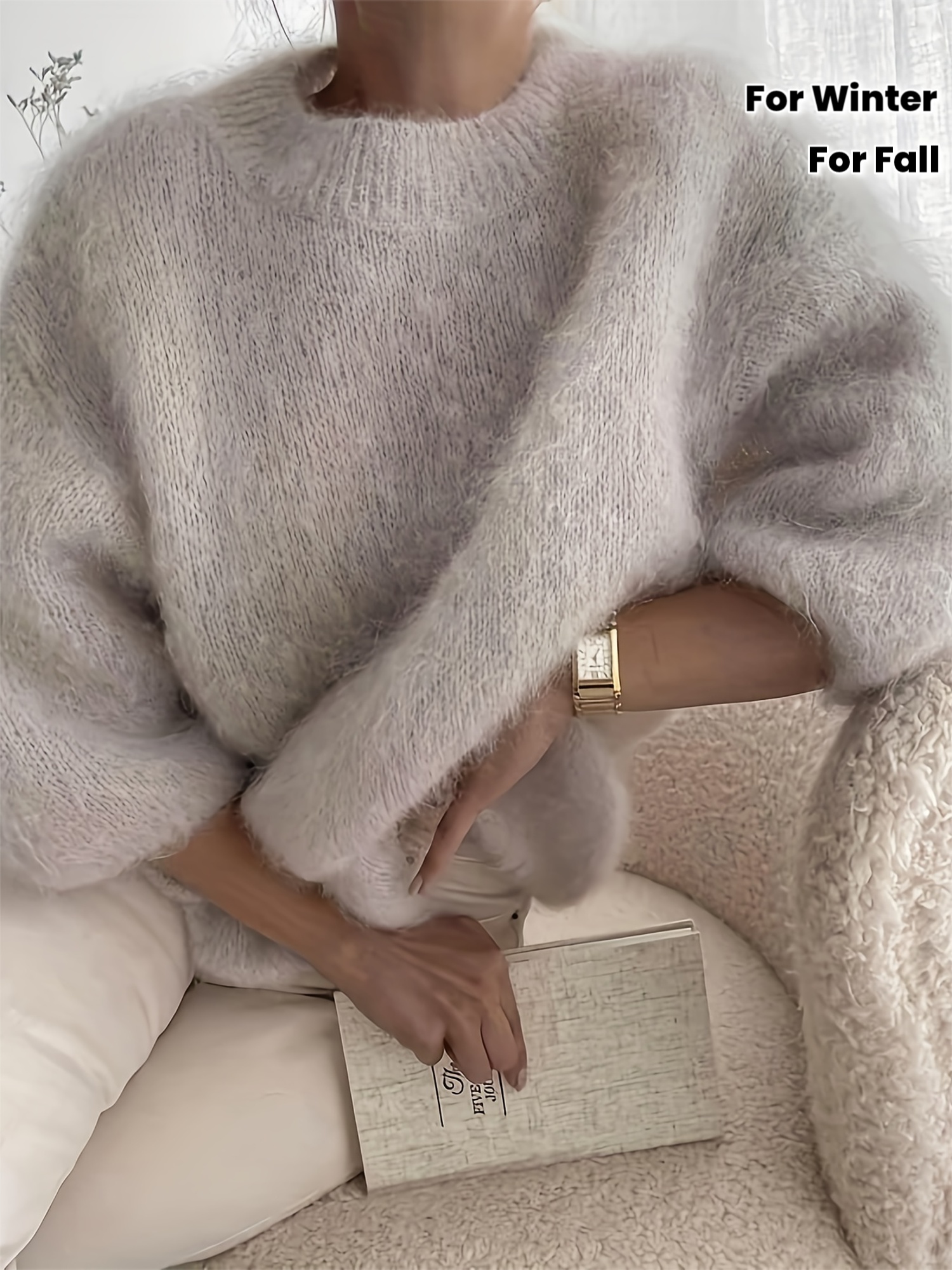 Women'S Autumn and Winter Round Neck Half-Sleeve Pullover Sweater, Soft Comfortable Fuzzy Loose Thick Top