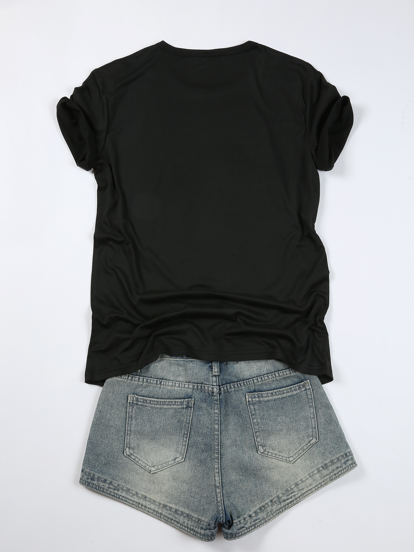 Mother'S Day, Cartoon Love Element Print T-Shirt Three-piece Set, Summer and Spring Short Sleeve Round Neck Casual Top Multi Set, Women'S Clothin